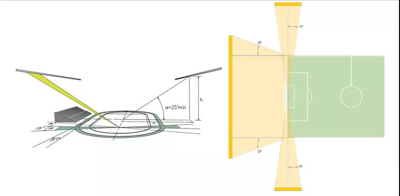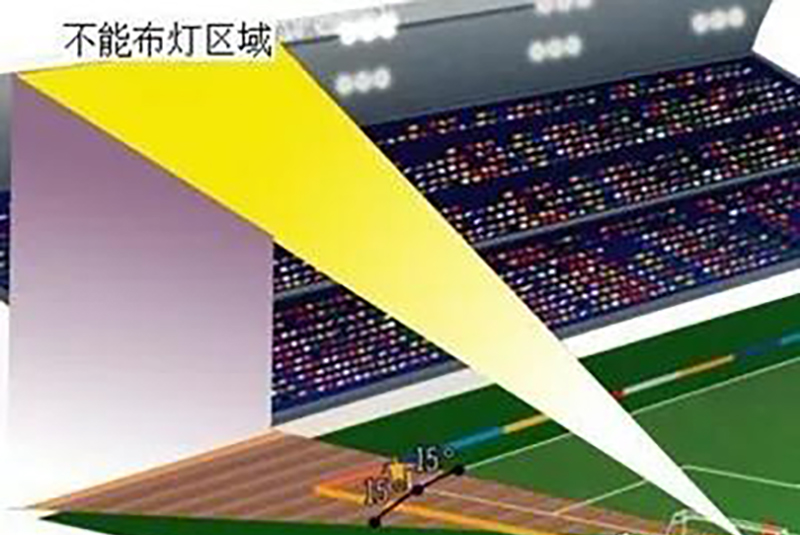 Para estádios de futebol, luminárias esportivas também podem ser instaladas nesta área. No entanto, o ângulo de mira da lâmpada deve ser evitado para projetar na área que pode afetar a competição dos atletas. Existem principalmente as duas situações a seguir: